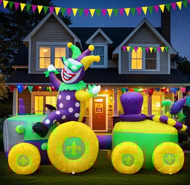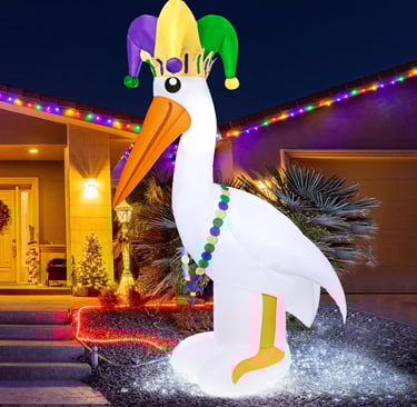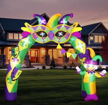 Mardi Gras is all about bold, eye-catching colors, and inflatables deliver just that! From traditional purple, green, and gold designs to larger-than-life figures like jesters, masks, and fleur-de-lis motifs, these decorations instantly enhance the festive atmosphere. Whether you’re hosting a lively backyard party, a front yard parade, or simply showing your holiday spirit, inflatables help set the tone for the season with their striking visuals. Many designs also feature LED lighting, which adds an extra layer of magic as they glow beautifully during nighttime festivities.